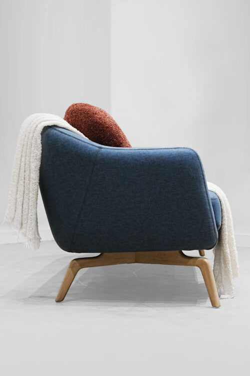 The Belt Blue Sofa is designed to make a statement with its sleek design and luxurious feel. Resting on sturdy teakwood legs with a smooth ICA Pidilite polish, it blends durability with sophistication. The upholstery is customizable to suit your style—choose between rich glaze-textured fabric for a soft, refined look or faux vegan leather for a sleek, modern touch. Perfect for both cozy and stylish spaces, this sofa brings comfort with a touch of elegance.