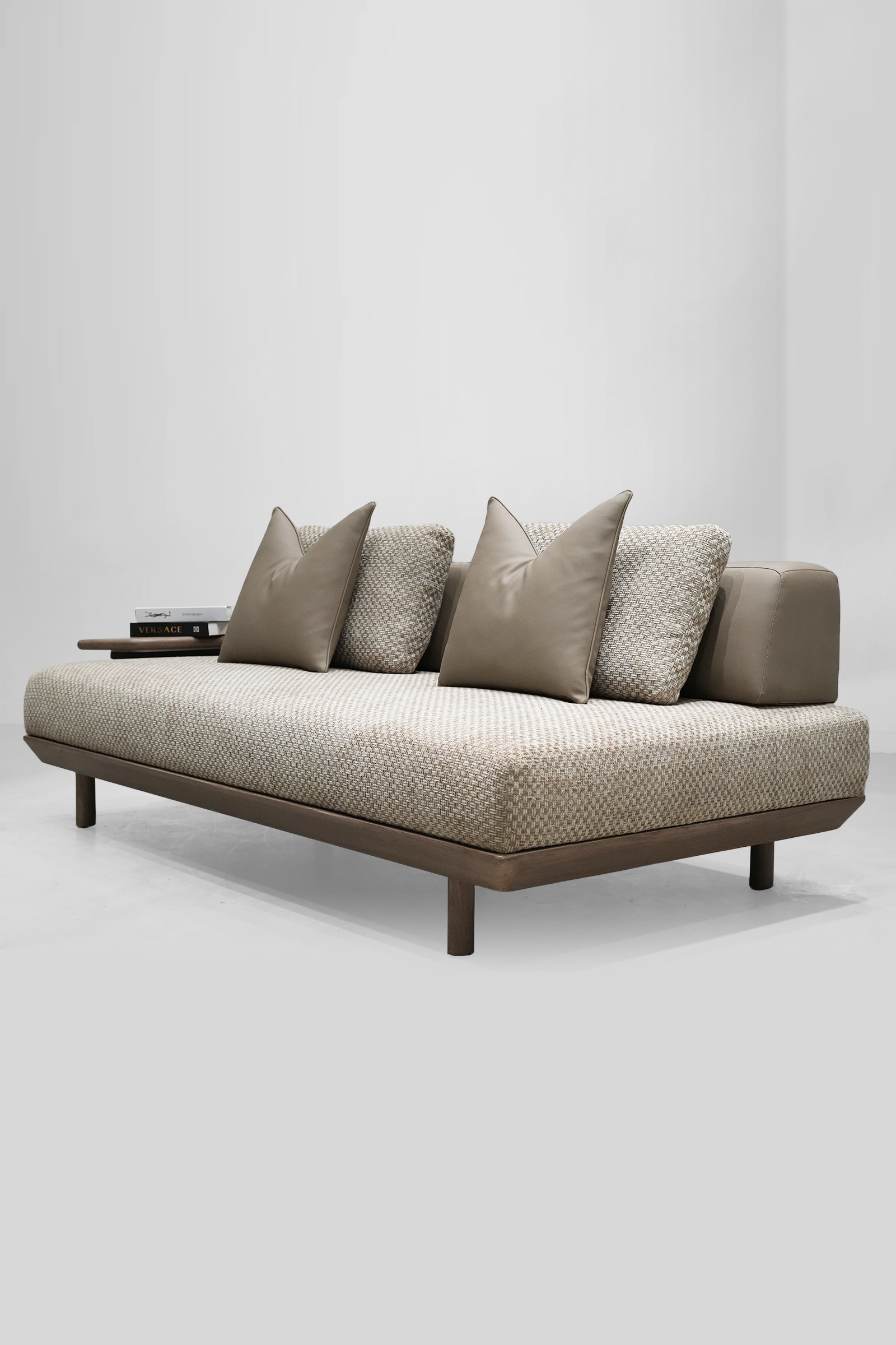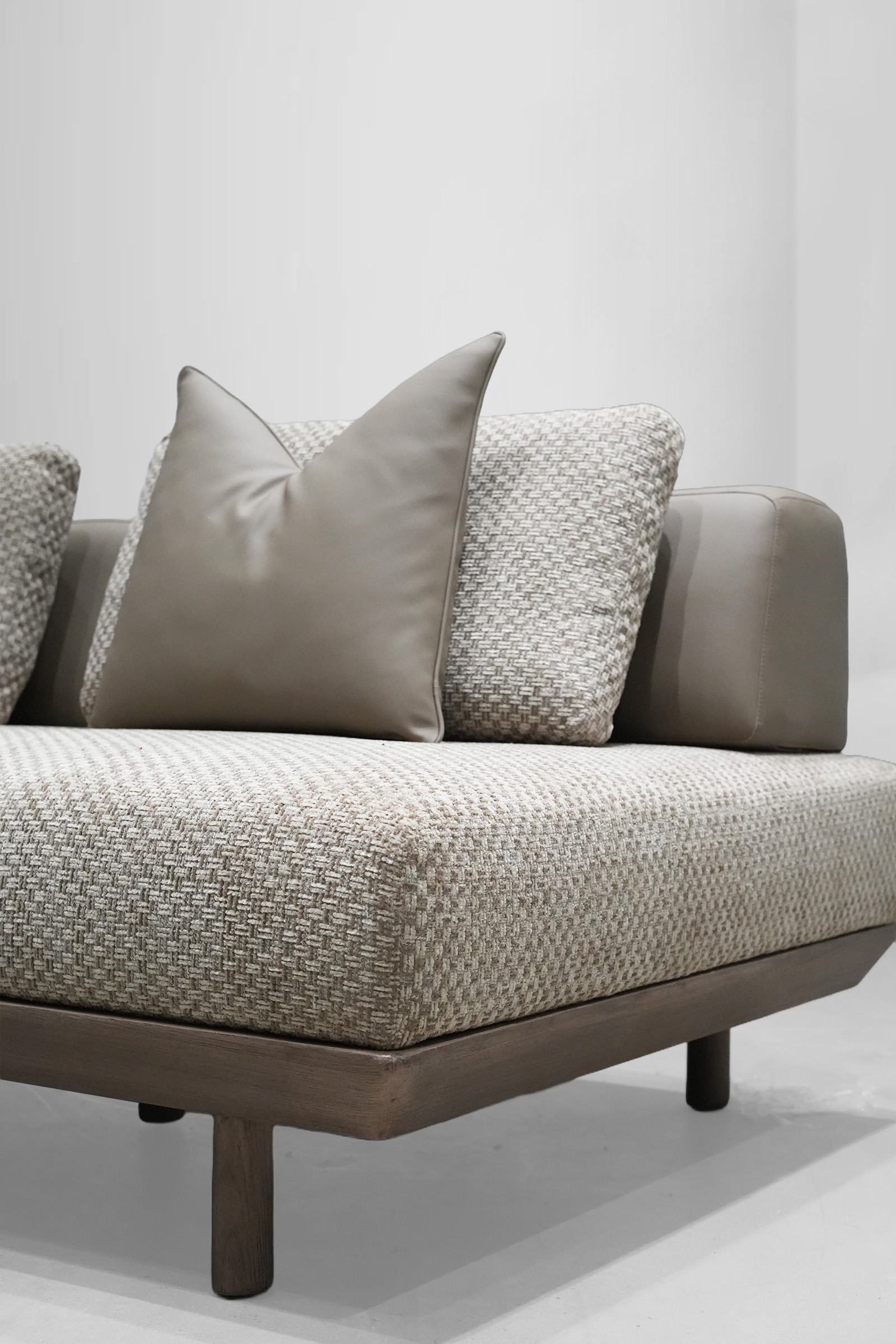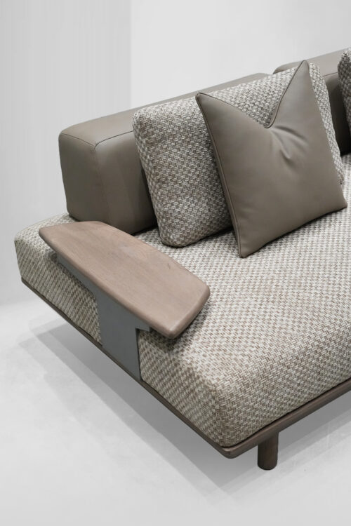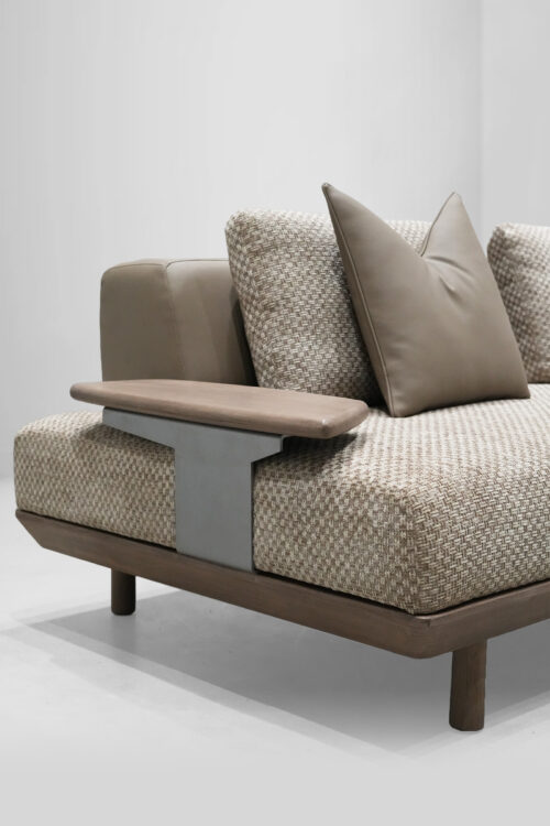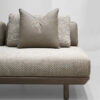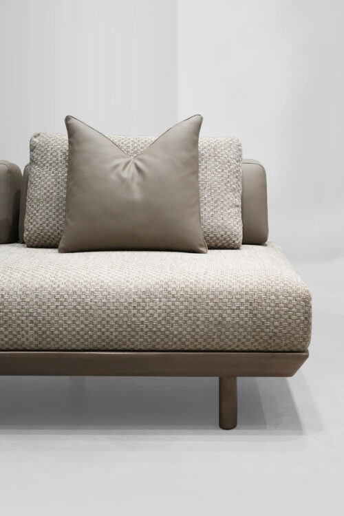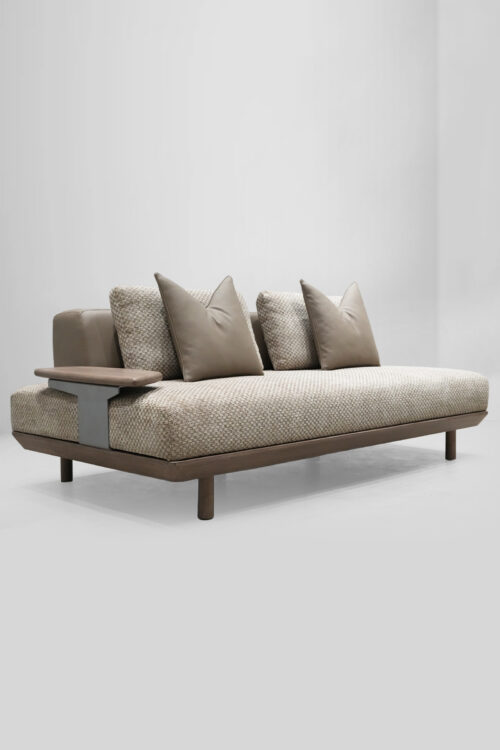 The Haven Lounger is your personal retreat in the heart of your home. With its long, graceful form and luxurious Jute-textured fabric, it promises an experience of comfort and style. Supported by sleek teakwood legs, polished to perfection, this lounger blends natural beauty with contemporary elegance, inviting you to unwind in sophistication.