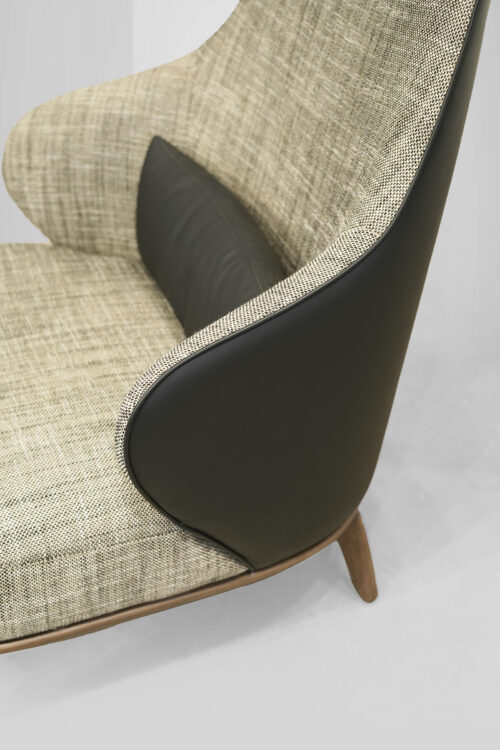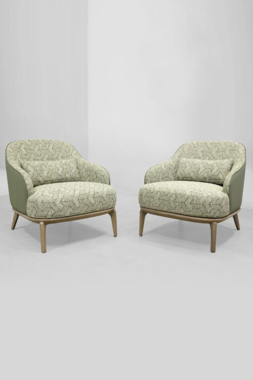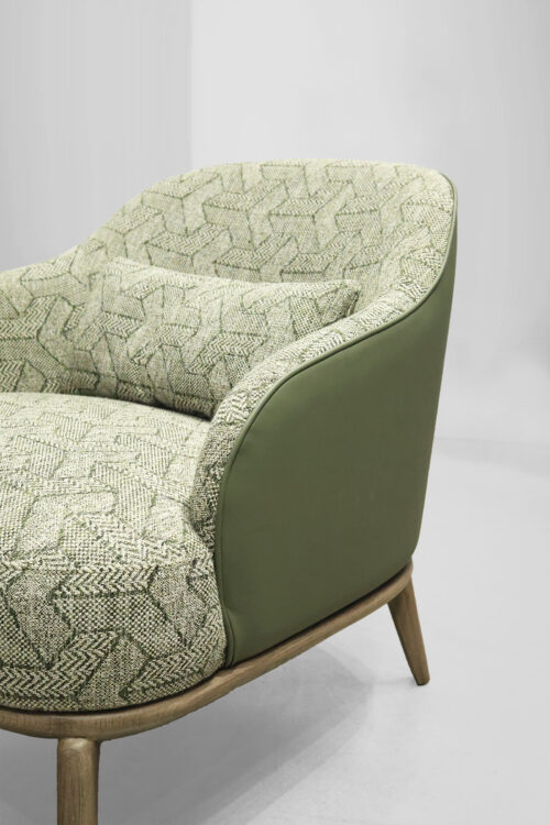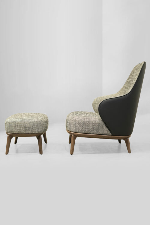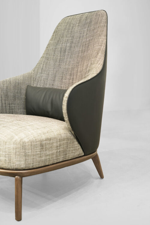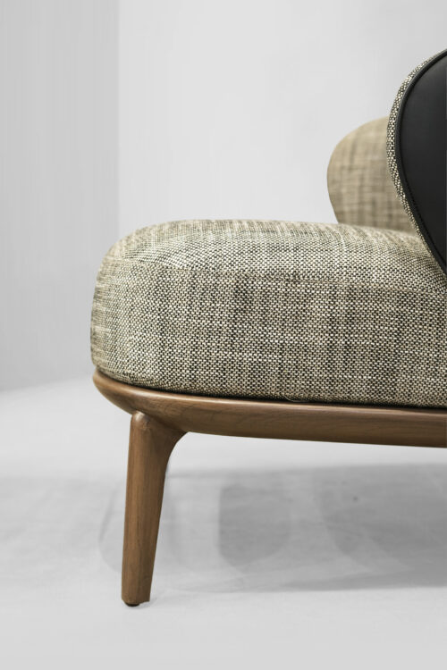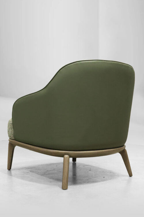 The Leslie Armchair brings a perfect blend of style and comfort to any space. Wrapped in soft textured fabric with a sleek leather back, it offers both warmth and sophistication. Its versatile design makes it an ideal addition to cozy reading nooks, stylish living rooms, or elegant office spaces, effortlessly enhancing any setting.