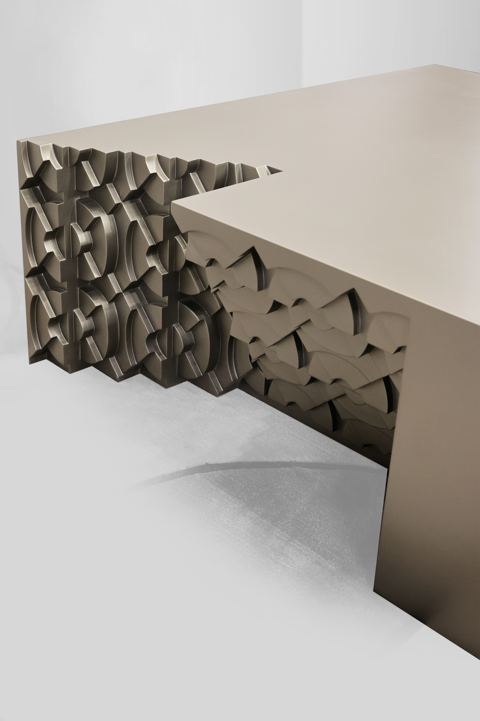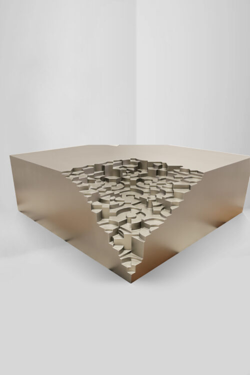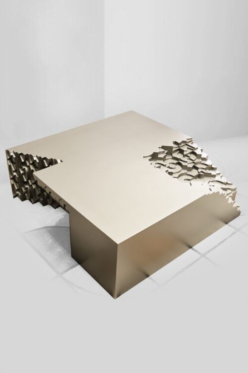 The center table is a gathering point for connection and recreation , embodying the spirit of calmness and solitude. Inspired by the soothing 432Hz frequency, which is the same as the ‘OM’ vibrations, this design translates the calming power of sound into a visual form through the science of cymatics, creating a calming experience. Named “Shamya Naad” , meaning the resonance of peace, this table seamlessly integrates sound, art, sccience, and Indianness to create a tranquil centerpiece for any space.
